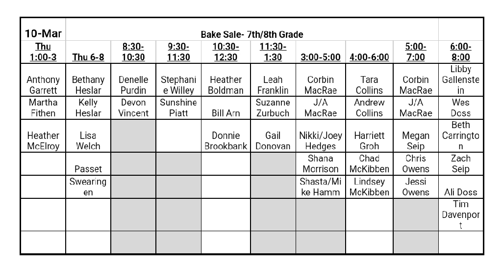 Volunteer Schedule 3/10/23