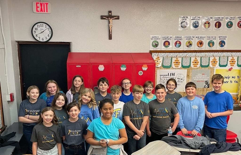 At morning prayer today we discussed what Down Syndrome is, and the importance of recognizing the the dignity and showing respect for all human life through awareness and kindness. Our students were allowed to be out of uniform wearing Down Syndrome Awareness t-shirts or blue and yellow.