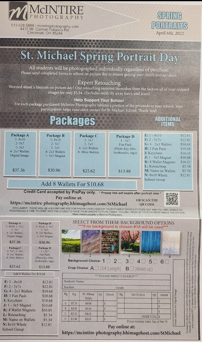 This is a reminder that tomorrow, Wednesday, April 6 we will have spring pictures. Remember for spring pictures, we ask that students be IN UNIFORM.