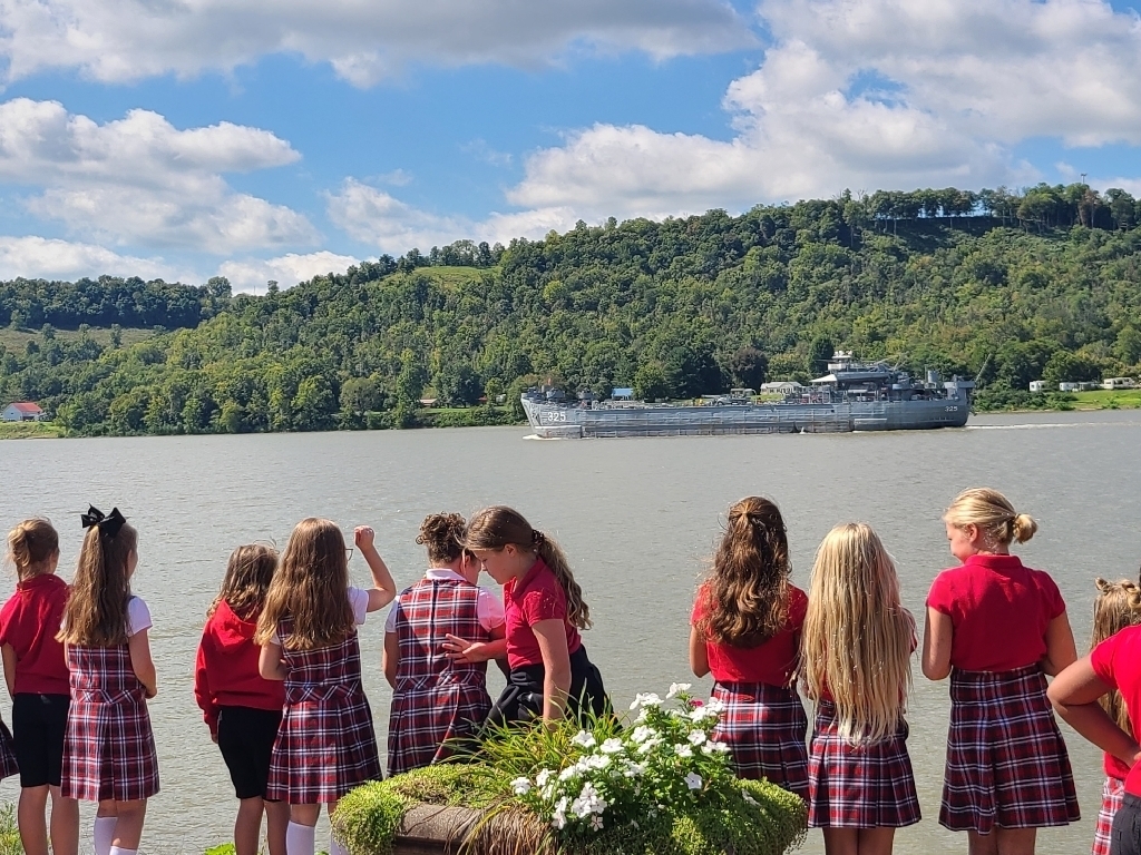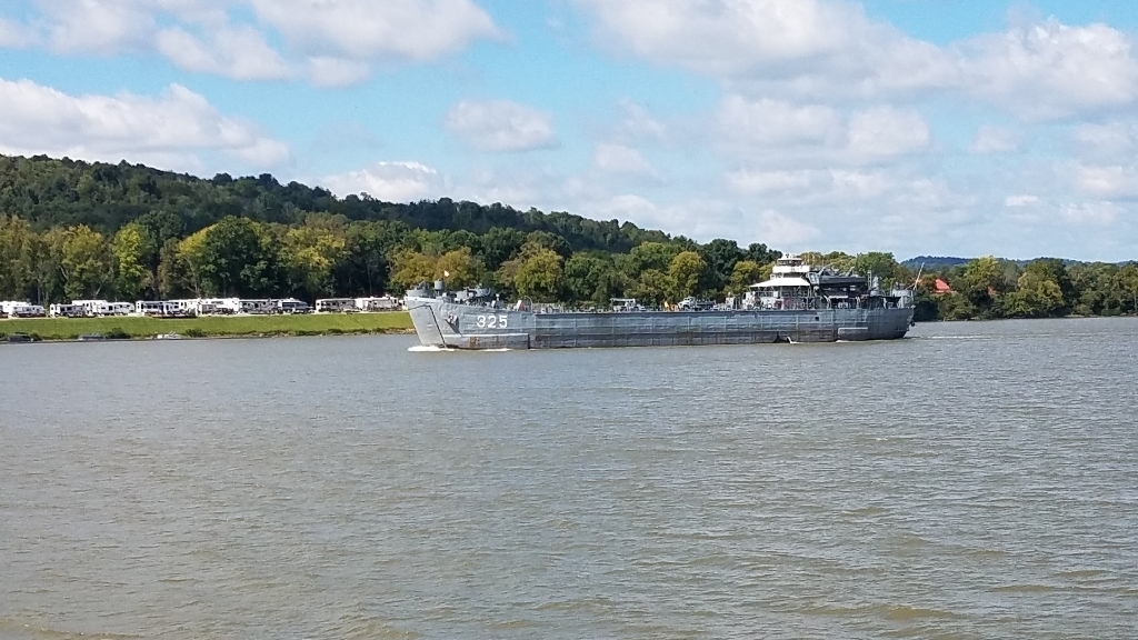 The LANDING SHIP TANK(LST) 325 passed through Ripley today on its way to Charleston WV. The LST 325 saw action in WWII in Sicily and in Normandy. Fortunately we heard about it today, and some of our students were able to make it to the riverfront to view her as she floated by. They even blew their horn for our students! The LST 325 will come back and dock in a Cincinnati September 28-October 3. What a great opportunity for our students in our own backyard!