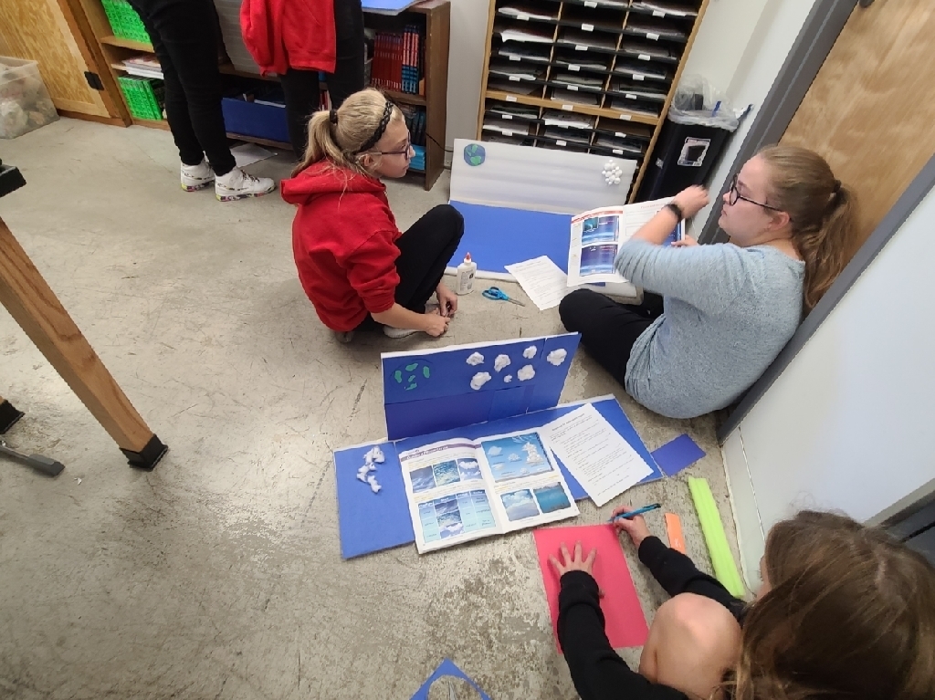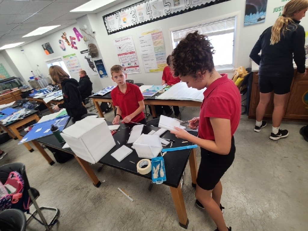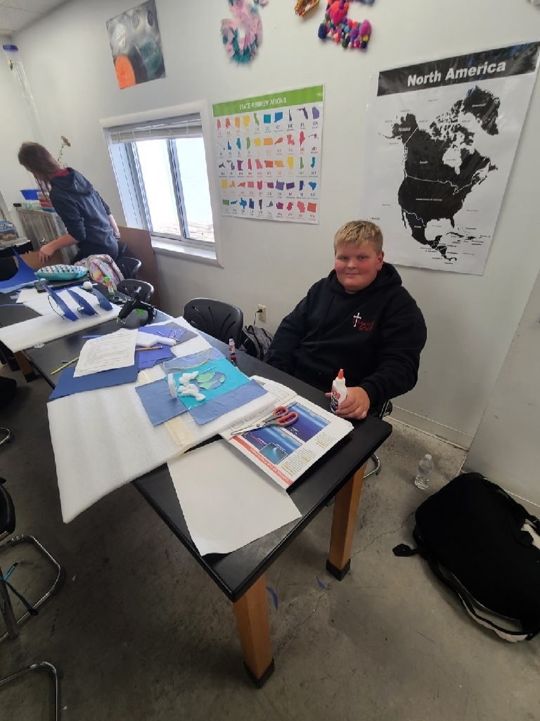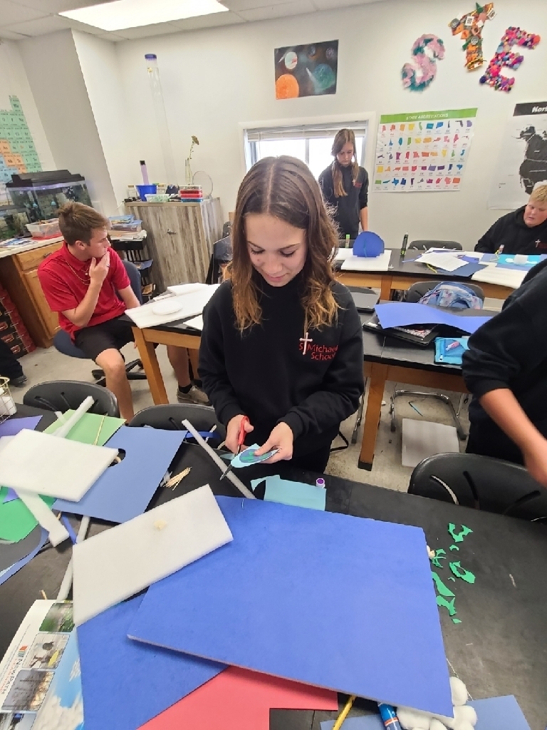 First grade learning cardinal directions while learning about Christopher Columbus. Third graders using manipulatives to gain a deeper understanding of place value. Fifth graders working out problems together, learning from each other's mistakes, and our junior high students using leftover furniture packaging materials to bring the layers of the atmosphere to life! Just another Monday at SMS!