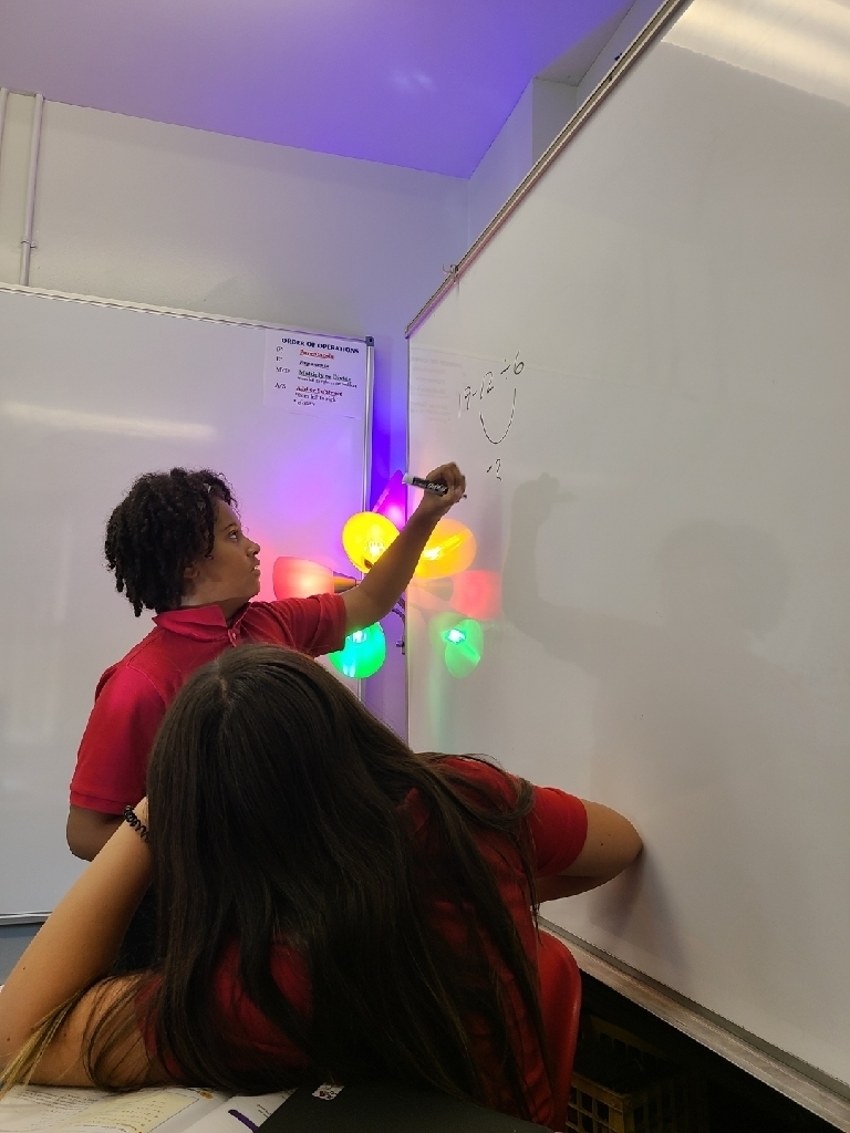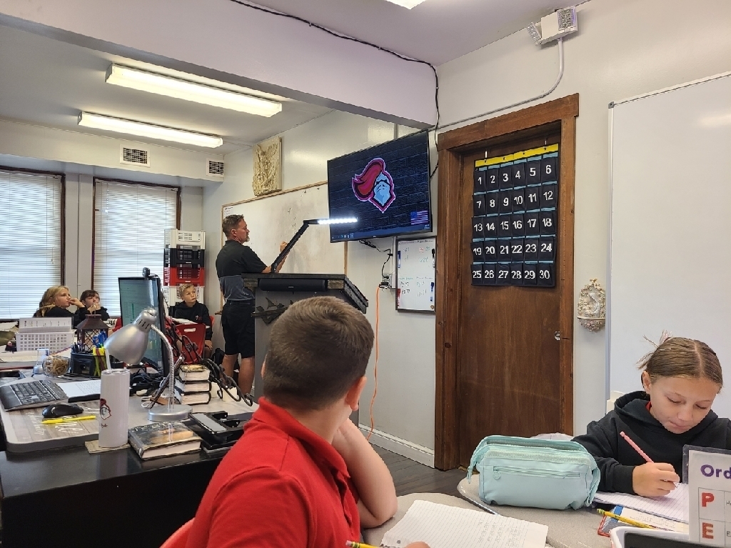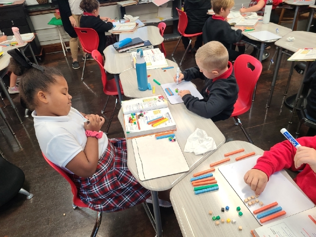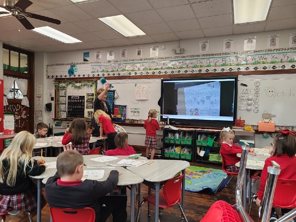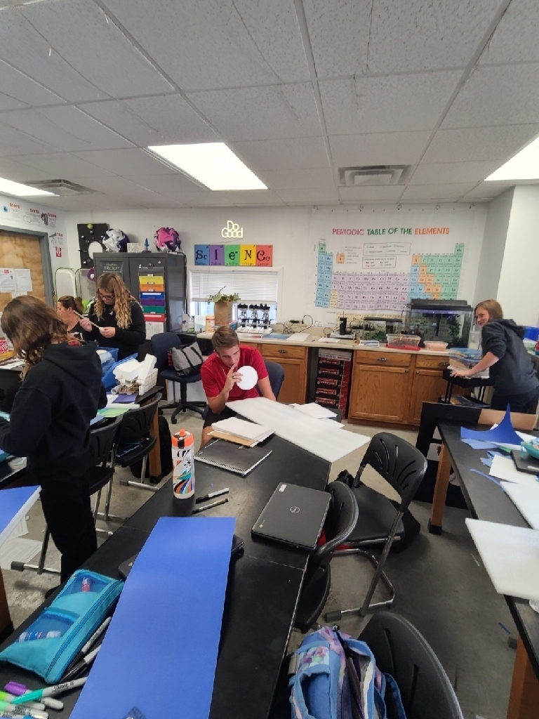 First grade learning cardinal directions while learning about Christopher Columbus. Third graders using manipulatives to gain a deeper understanding of place value. Fifth graders working out problems together, learning from each other's mistakes, and our junior high students using leftover furniture packaging materials to bring the layers of the atmosphere to life! Just another Monday at SMS!